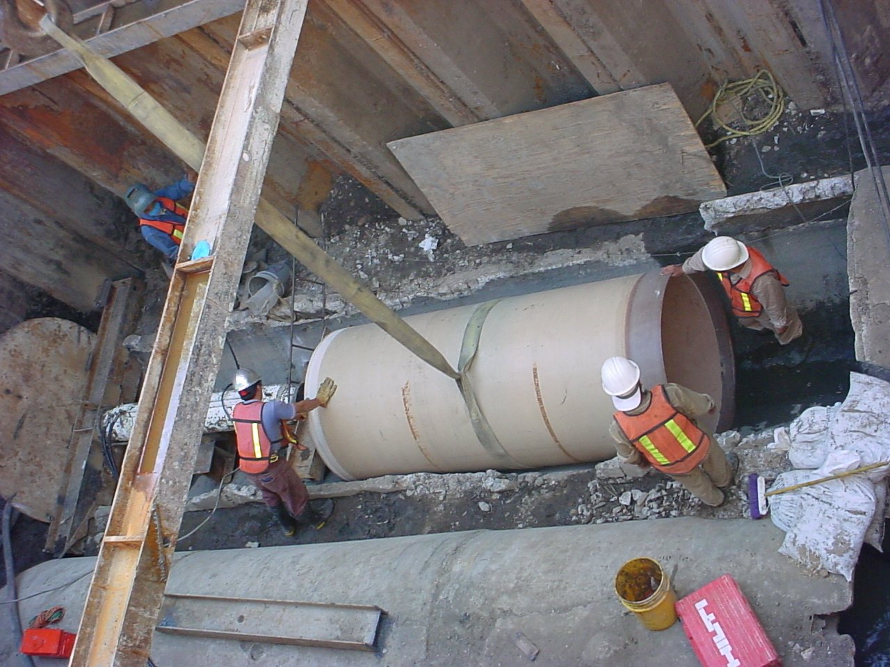 Se instala tubería nueva con diámetros nominales de trabajo desde 1.22 m (48”), 1.52 m (60”), 1.83 m (72”), 2.13 m (84”), hasta 2.44m (96”) mediante el sistema de tuneleo (pipe jacking), a base de hincado hidromecánico de tubería, con escudos TBM al frente de la excavación de acuerdo al tipo de suelo en el que esté trabajando, guiados con rayo laser. El procedimiento general es el que a continuación se describe: